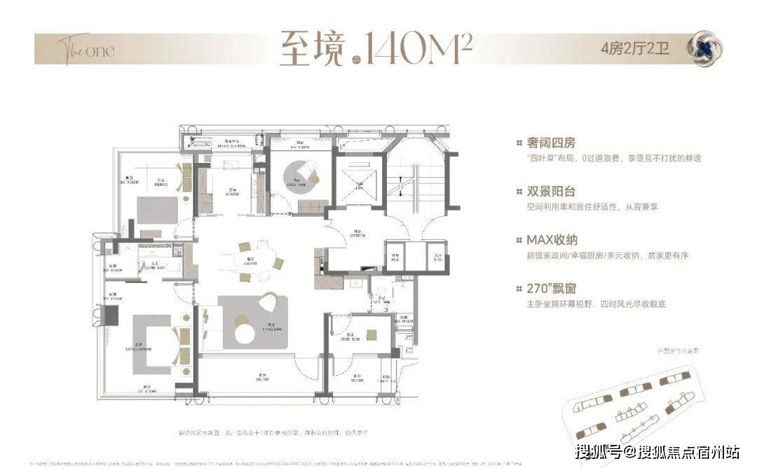 整体布局与140㎡户型基本一致,双南向阳台、独享电梯厅、6飘窗等户型拓展面积超过18㎡!