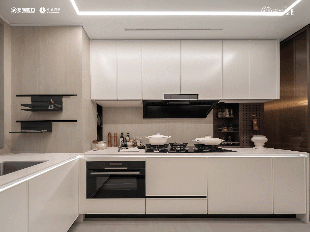 2、4大MAX收纳空间:餐厅配备大通顶柜,实现高效收纳;厨房采用U型设计,极致收纳空间包括天使拉篮(顶部反光板)、多功能墙面收纳及墙面调味篮,并配置家政柜,卫生间提供个性化收纳方案。