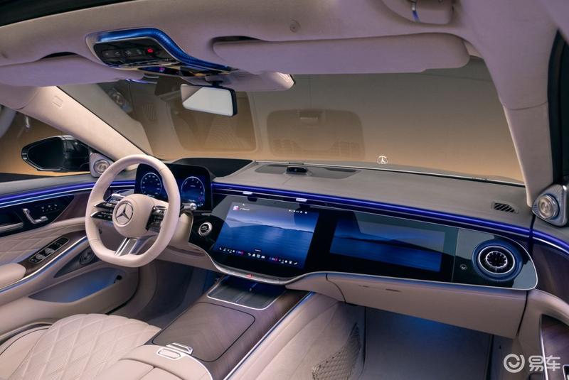 前大灯首次采用“双星徽”造型,与两侧各有3枚镀铬边框星徽的尾灯前后呼应,当驾驶者靠近车辆时,灯组即刻闪耀致意,辅以侧裙投射于地的“Mercedes-Benz”迎宾光毯,科技感十足。值得一提的是,新一代智能数字大灯搭载行业前沿的micro-LED技术与全新高性能芯片,在能耗降低约50%、重量减轻超25%的同时,将高分辨率照明范围扩展了约40%,弯道照明更精准。