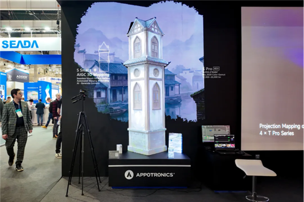 展会上,光峰专显两款最新4K工程投影产品S Smart与S Pro联袂亮相,以沉浸式现场演示直观展现技术实力。其中,S Smart依托算法实时生成画面并完成精准适配,将内容清晰投射于现场钟楼建筑模型,打造出高品质的3D Mapping投影秀。
