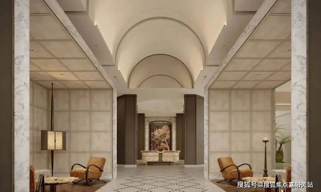 出于同源康定壹拾玖的审美,壹江臻邸延续了“揉石成缎”的核心匠艺,月光米黄石材门头历经十余道工序精磨,将织物般的温润肌理化作归家第一重礼遇;更以瑰丽酒店同源的严苛标准,打造家族专属门牌徽章,静默宣告其恢弘身份。