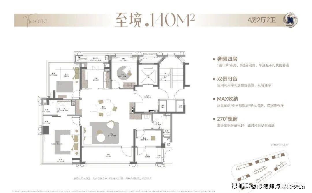整体布局与140㎡户型基本一致,双南向阳台、独享电梯厅、6飘窗等户型拓展面积超过18㎡!